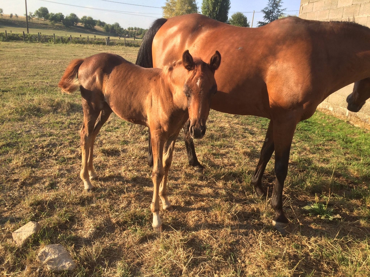 | Dire merci | Elle a d'autres chevaux avec qui grandir la pouliche? Des chevaux qui la remettent à sa place? |