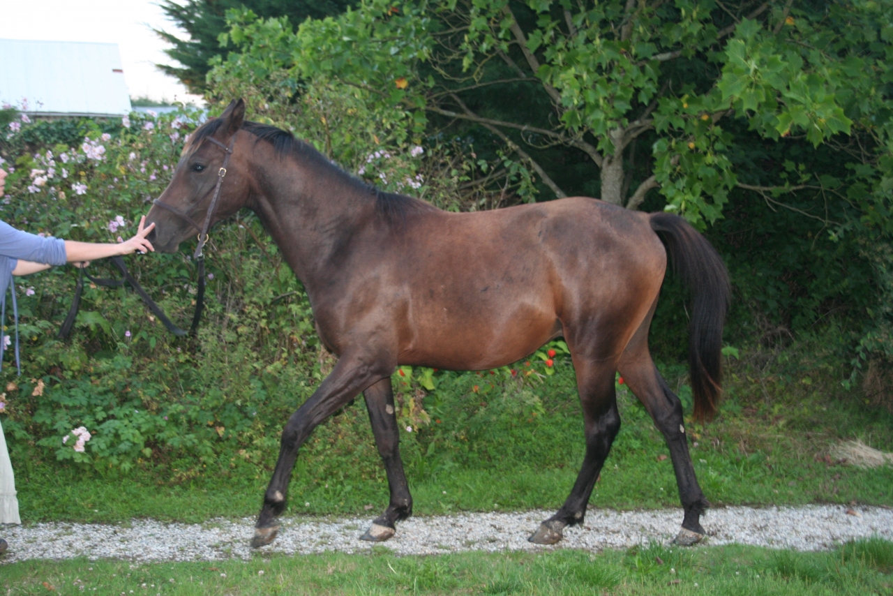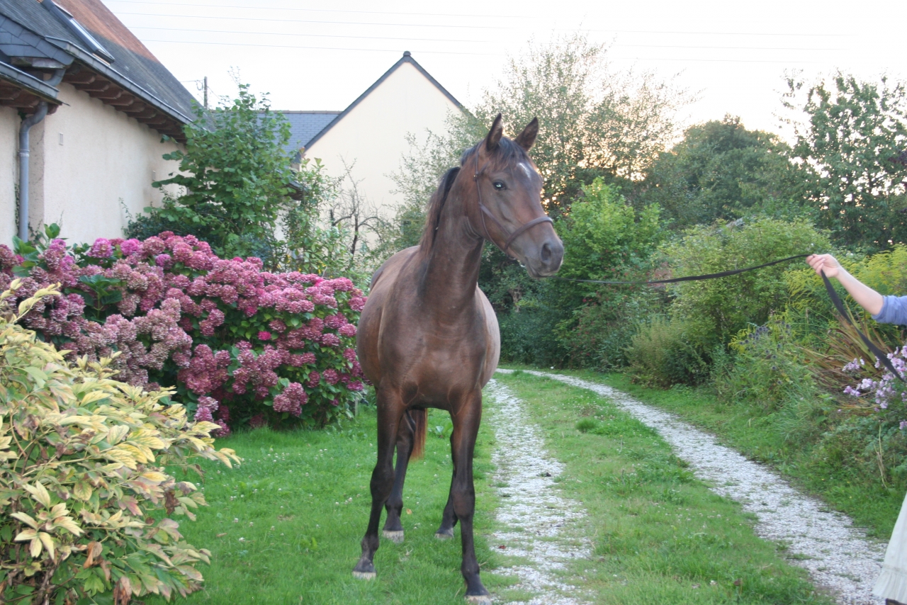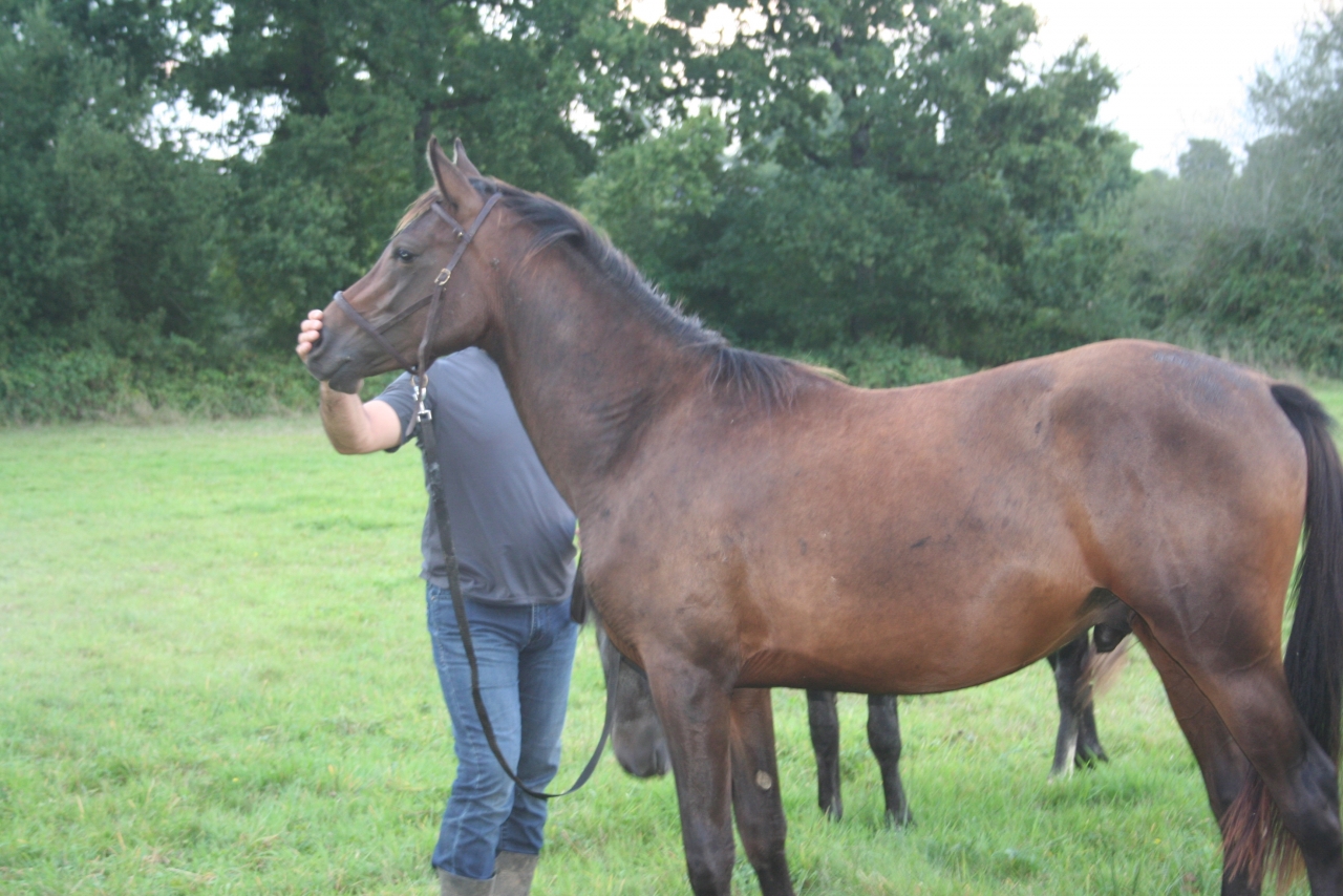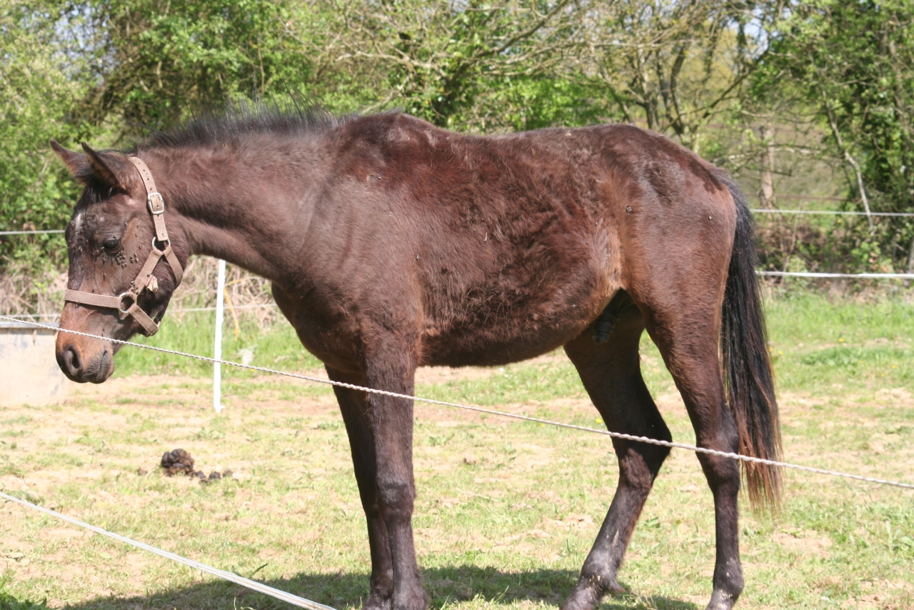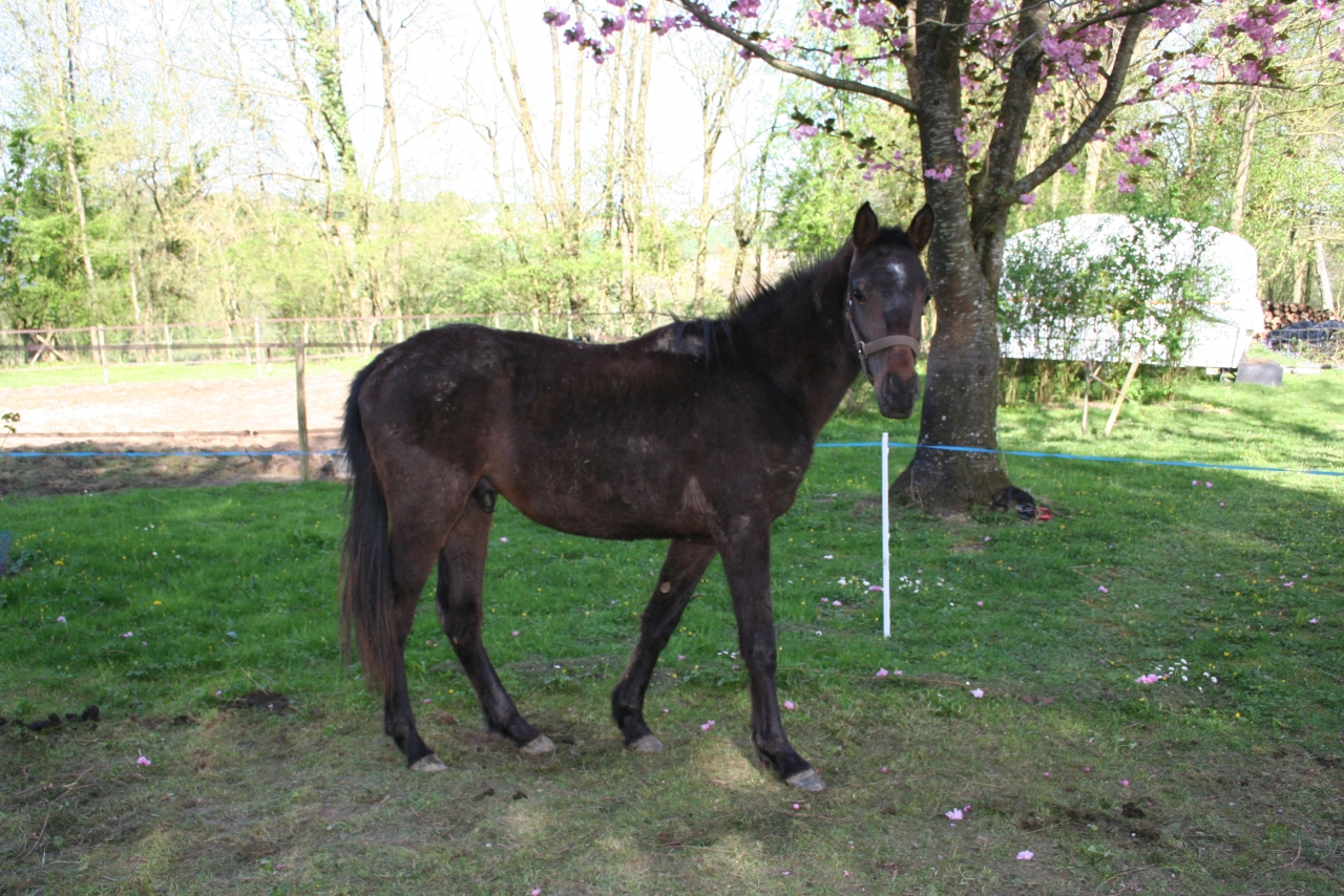 DéconnectéDire merci | Et bien, pour faire court, ma curiosité m'a fait répondre à une annonce sur lbc. Je voulait juste savoir si s'était bien le maquignon (il n'y a pas d'autre nom) auquel je pensais qui l'avait publiée. J'ai appelé, il m'a demandé ce que je recherchais (rien en fait, j'ai déjà 7 dadas à la maison....), il m'a parlé de 2 poulains d'1 an qu'il venait de récupérer avec un troupeau en sale état. Je suis allé voir, effectivement des poulains maigres à faire peur avec le poil typique des chevaux ayant eu des poux et des vers.Il me propose donc le lot à 400 euros, à moi de les faire puçer (donc onc). La pouliche ne me plait pas (je ne la trouve pas sympa), mais le poulain est curieux, nous suit malgré sa faiblesse et a un regard vraiment très doux. Il me fait pitié, je dit ok et pour 200 euros il arrive 2 jours après à la maison (il me montre un livret qu'il présente comme celui de la mère, une jument arabe importée des états unis). Je fait venir dans la semaine le véto pour la puce et le vaccin, on verifie quand même et là, surprise : le poulain est puçé....On va sur le sire, rien. J'appelle 2 jours après l'ifce qui me répond que la puce correspond à une saillie déclarée, de même que la naissance est elle aussi enregistré mais que le naisseur n'a rien payé. Autre surprise, il n'à pas 1 an, mais 22 mois !!!Bonjour le retard de croissance : tout le monde à cru qu'il avait tout juste 1 an, même le véto. Bref après moult péripéties, nous régularisont tous les papiers et le voilà inscrit au stud book et en règle. Il est toujours adorable, à pris 10 cms et 150 kgs en 4 mois et ressemble enfin à un poulain de 2 ans. |