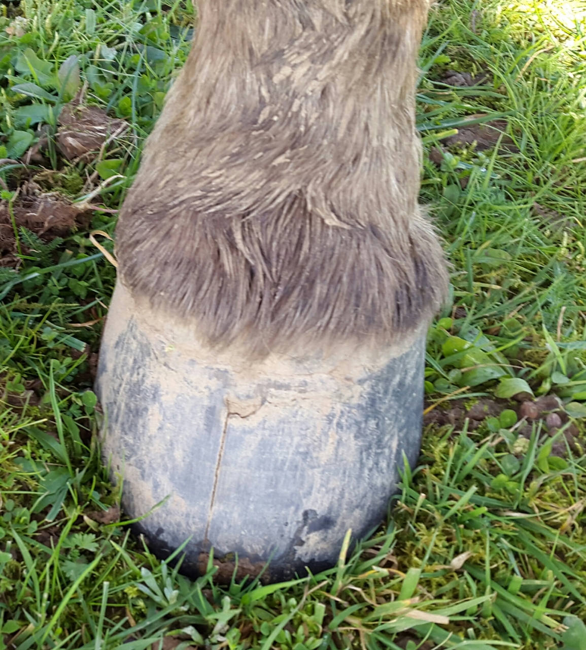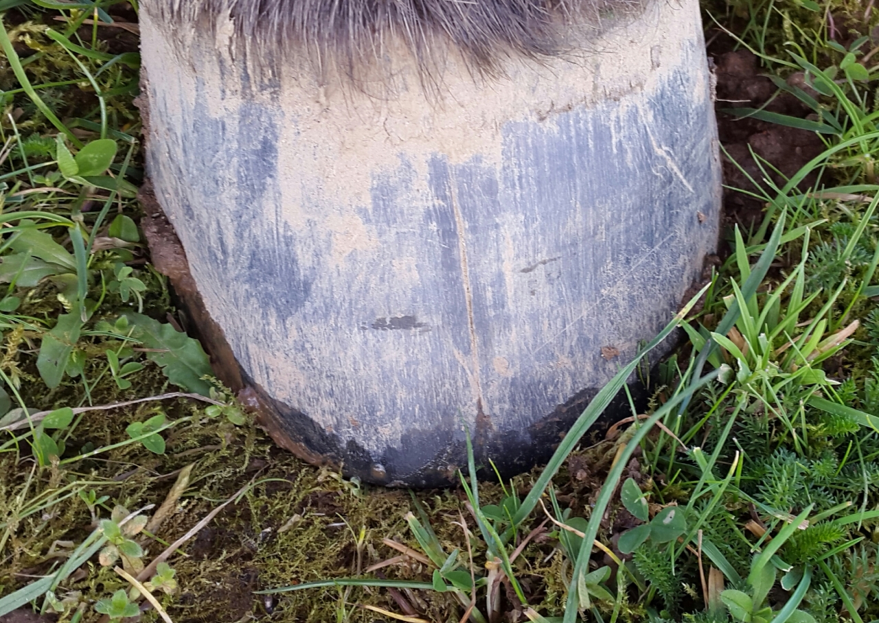 | Dire merci | Griotte m'a fait ça sur des postérieurs mais pas en pince, en paroi externe, elle c'est parce que le maréchal s'obstine à laisser la paroi d'où des évasements et ça finit par péter. ![]() Vérifie que la pince n'est pas trop longue en paroi et qu'il n'y a pas comme un début de creux dans la ligne blanche à cet endroit. |
