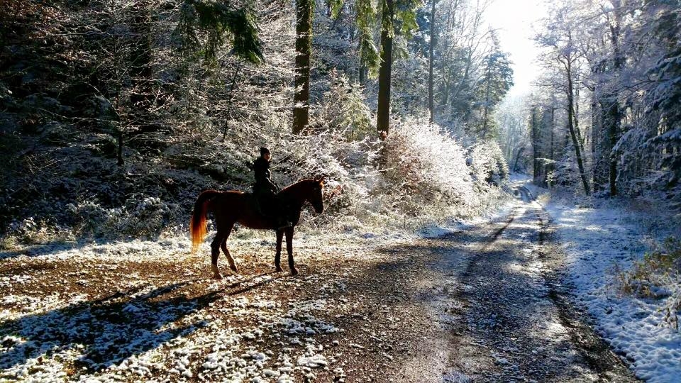 | Dire merci | ici on avait la neige certes mais le soleil aussi, du coup sortie aux longues rênes avec Quiara, chose qu'on a pas faite depuis pfff, quelques années je dirais ![]() ![]() |