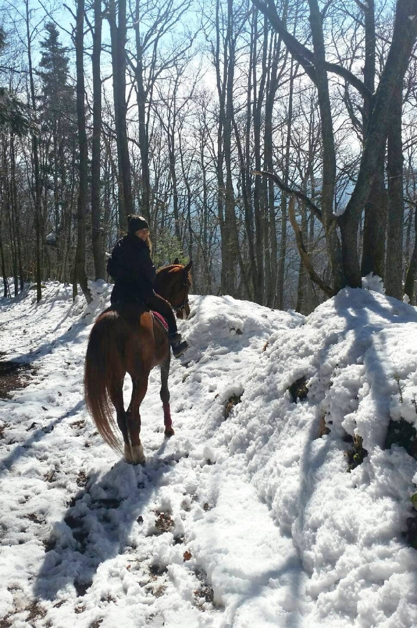 ). De la désensibilisation au passage étroit avec branches qui frottent le ventre, les jambes, s'arrêter dedans, reculer, repartir etc...
