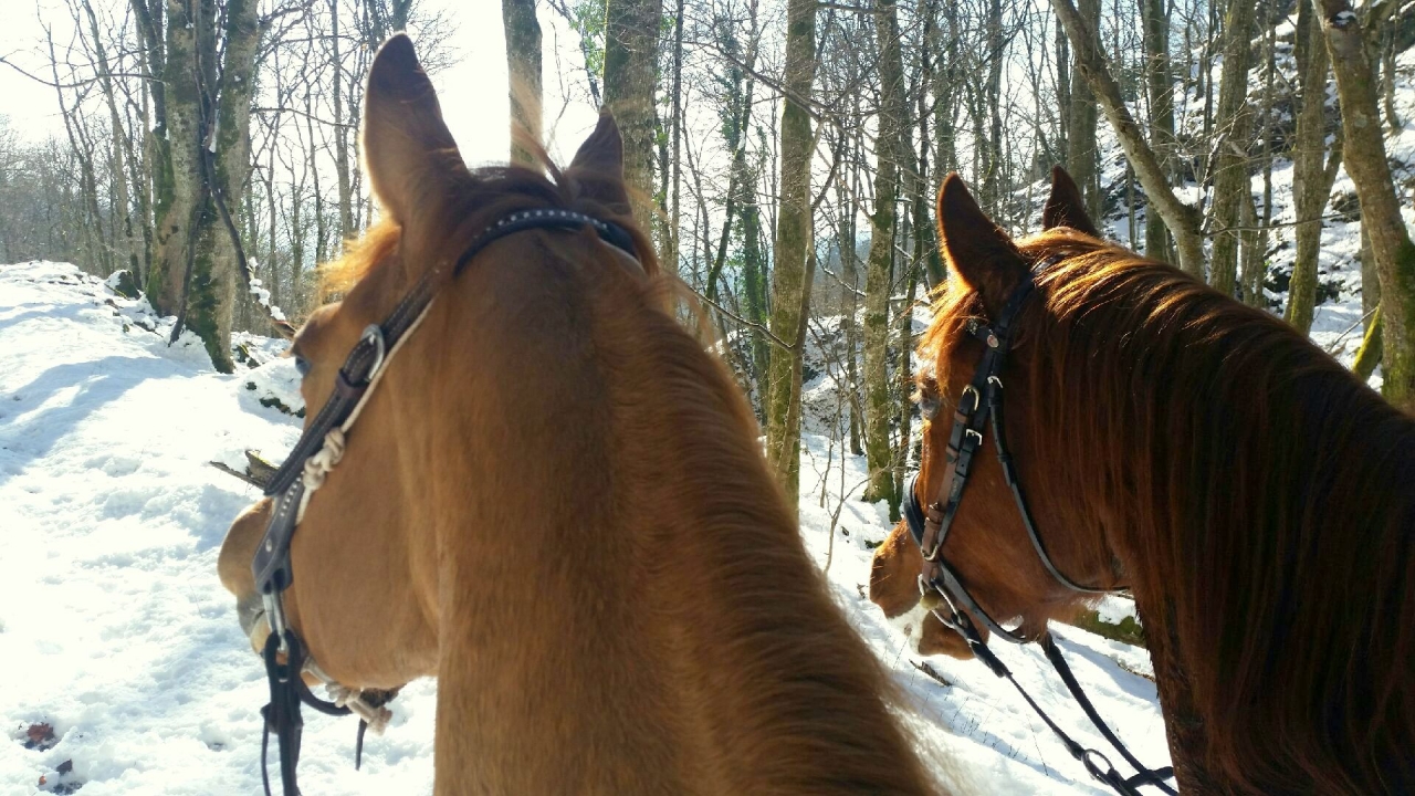 | Dire merci | et nous 7h de rando et 40km avec les copines et mes 4 chevaux avec des températures estivales, on a cuit sous nos blousons.![]() ![]() ![]() |