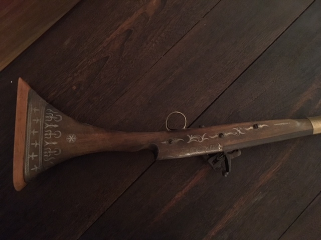 | Dire merci | avec plaisir ! contente de t'avoir aider ! en tout cas il est magnifique ! en arabe on appelle ca la3b al baroud ! (ce qui veut dire le jeu de la poudre) pour désigner la fantasia je pense oui que c'est classique sur ces fusils ton grand pere etait dans quelle region au maroc ? |