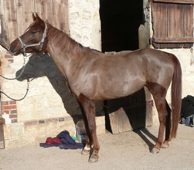 | Dire merci | Bon alors trop long en pince et en talon... Y a aussi une forme sur le paturon de l'antérieur gauche du côté externe... Les postérieurs vu comme ça sont mieux mais aussi trop longs... Vas y te gène pas pour lui dire qu'il fait de la m***...Et bien ferrer ne prends pas bcp plus de temps que de mal ferrer. Souvent les maréchaux font exprès de bâcler leur travail pour ne plus être rappelé par cette personne, c'est leur façon de sélectionner leur clientèle. C'est peut être un message de ce genre pour ta copine ! ![]() J'en dirai pas plus comme je suis une adepte du pied nu. Ta jument est pied nu, pourquoi pas celle de ta copine ? Faut pas tjs écouter les monos... Et puis la pourriture de fourchette ne se soigne pas mieux avec des fers aux pieds, au contraire. Voilà. ![]() Kirikou...tu connais pas ta droite et ta gauche !!! donc faut inverser ce que j'ai t plus haut : forme en interne sur l'antérieur droit (elle s'est peut être touchée un jour) |