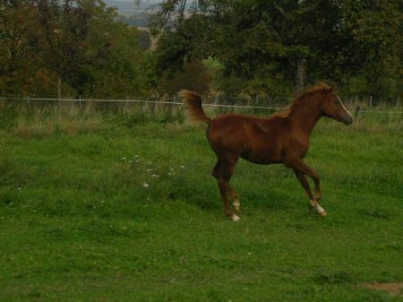 | Dire merci | pour le confort, jusqu'à présent je suis pas encore tombé sur un arabe pas confortable. Même quand il y à des ours et qu'elle fait des écarts, ça reste raisonnable. C'est surtout les grands chevaux qui posent problème au niveaux du confort des allures. Nos petits bolides sont pourvu d'allures aériennes et bien cadencés. Pour les pieds, c'est mon maréchal qui décide, je lui fait une confiance aveugle. Il ne la ferre que si c'est nécessaire, et en fonction des terrains et du travail qu'ont va faire. Pour le moment elle est pieds nu. |