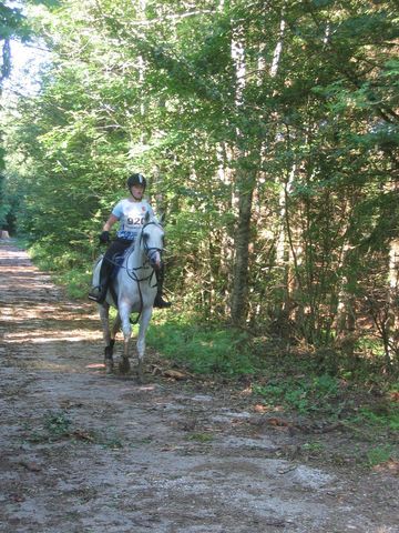 | Dire merci | J'ai enfin des photos de ma petite Silouet en mouvement ! Après sa blessure ça fait plaisir de la voir comme ça ! En plus elle est vraiment attachante, du fait qu'elle est en box individuel et qu'il n'y a que moi qui la sort elle commence à me trouver un peu plus frequentable, elle vient même chercher ma compagnie, ça me soulage, parce que au début c'était pas gagné ! Elle commence à me faire confiance, ça devient bon !![]() ![]() Sinon j'ai repris les sorties en extérieur avec Quelle, seule ç va, mais avec les autres c'est devenu une pile electrique, elle en veut ! En revanche son caractère s'affirme ! quand je la contrarie, elle se fache ! |