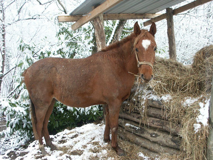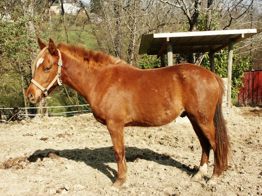 | Dire merci | ben le voilà votre dissident ! ça fait un petit moment que je suis ce post sans avoir jamais posté... en voici l'occas ! Je vous présente donc Trinity, mais je sais pas trop où le caser (vous pourrez peut-être m'aider) : son père est un psar, sa mère l'est à 90% mais issue d'une saillie non désirée, donc OI. Mon poulain le sera aussi car pas pu récupérer la déclaration de naissance (c'est une longue hisoire)... Il a deux ans tout juste, je l'ai acheté à 11 mois. Il est bien grassouille mais je l'ai mis au régime ! Voici une photo d'avant diette : l'hiver n'a aucun effet sur lui ![]() ![]() Une autre pour la route, de profil (pas terrible la photo mais ça donne une idée). ![]() |
