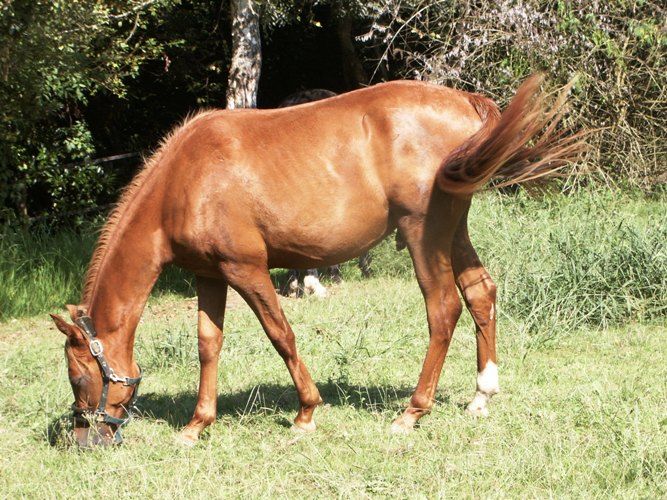 | Dire merci | Mystic, je l'ai mesuré il y a 15 jours (avec les moyens du bord..) il toisait les 1,49 à peu près. Non il n'y a pas de poney malgrè sa tronche , c'est clair que sur cette photo on pourrait le penser... chez sa mère il y a un peu d'anglo mais sinon c'est que l'arabe.Une photo où il fait moins poney (j'espère en tous cas !!): ![]() |