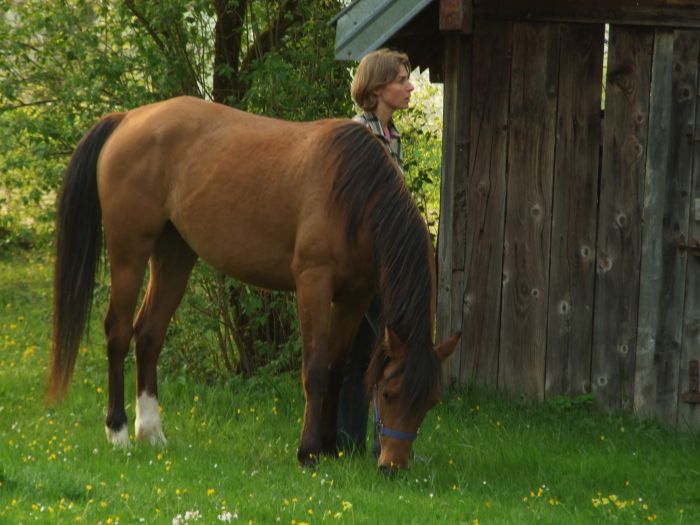 | Dire merci | Pfiou je suis desespérée je viens d'apprendre que le pré de Caïda allait etre desherbé et que du coup mon ventre sur pattes allait avoir le pré qui est libre depuis l'été dernier et du coup plein d'herbe Elle ne va y rester que deux semaines mais ca va lui suffir pour qu'elle double encore de volume J'hesite même a lui mettre un truc pour restreindre le broutage...Sinon je vais finir comme el Bimbo toujours a cru ^^ maintenant que j'y ai gouté j'adore ^^ je n'ai pas encore tenté le galop mais ca ne saurait tarder ! |
