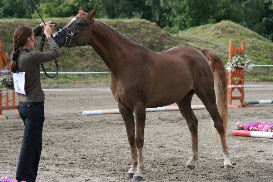 DéconnectéDire merci | Et bien moi je n'aime pas du tout les membres de Tschaddar par rapport à sa masse. Je reviens du sud ouest, je suis allée découvrir quelques beaux poulains au Haras de Nautiac, chez Harmattan arabians, et chez Iberic arabians. Pour le sport, moi qui ne suis pas fan d'égyptien, j'ai découvert un étalon incroyable, 2M samawi, chez Ibericarabians. Il est de passage pour un an, il vient d'Italie, c'est un monstre ! Il a 4 ans, doit faire plus d'1m60, il a dse membres super forts, une ligne de dos géniale, et un ensemble d'une harmonie aie aie aie ! Rien à voir avec les photos ou on lui a tirer le portrait "show". Une bête ! D'ailleurs, il a des demandes de saillies pour l'endurance. Pour dire, les 3 étalons sur 4 à coté de lui faisaient crevettes ! |