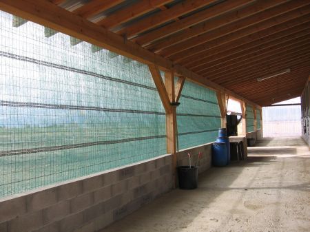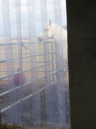 | Dire merci | et dans chaque box, des lamelles en plastique pour sortir au paddock...où Gala se repose après une séance de travail.![]() |