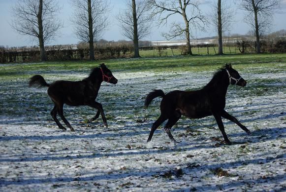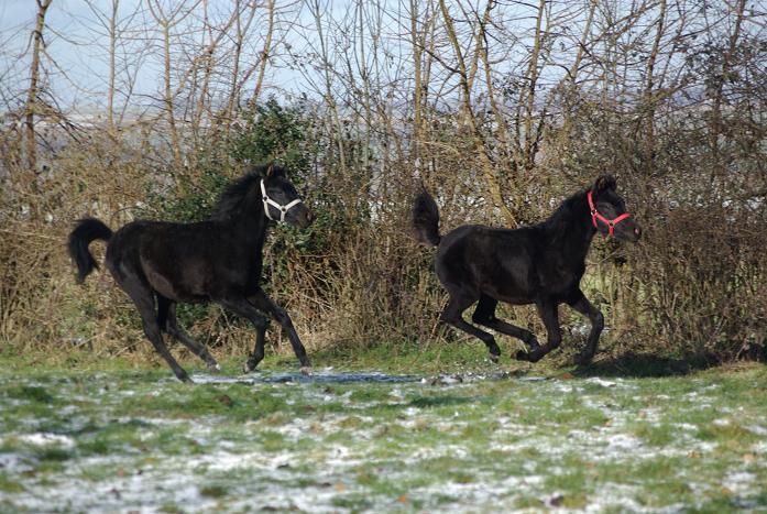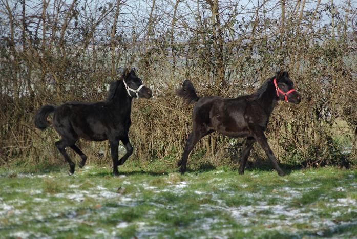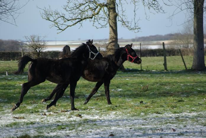 | Dire merci | ils sont très beaux ces petits noirs, et en plus ils s'éclatent bien ! El bimbo: je connais pas ton remède de sorcière ![]() et pour ce qui est de faire saillir Gala, j'ai 2 problèmes, j'ai envie de progresser en monte western avec elle, et en plus quand ont voit les photos de poulinou, je me dit que je vais me retrouver avec 2 pensions à payer, car c'est trop beaux !!! Ont à déjà perdu trop de temps toute les 2, avec mes 2 grossesses, que maintenant, je veux en profiter pour la monter... ![]() |