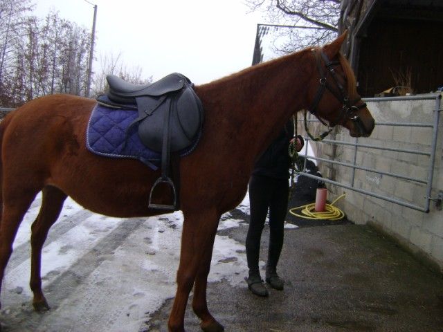 | Dire merci | je serais à l'écurie tous les jours...je fais le débourrage à amalia et pi j'espere, non je prie pour pouvoir monter 1 jour... c'est la selle à la grande marie, c'est une eric thomas et c'est tout ce que j'avais sous la main. t'inquiete l'amortisseur, c'est le mien et il bouge pas d'un iota!! |
