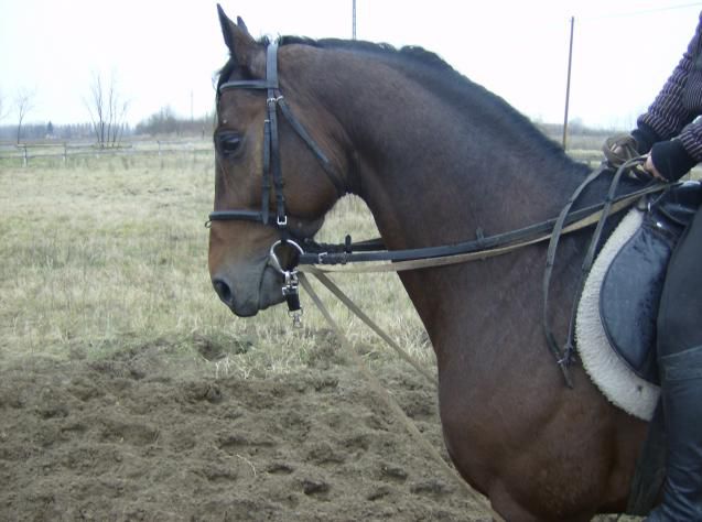 | Dire merci | le 1er, avec les rênes allemandes, a tendance à casser son port de tête à la 3è cervicale, voir s'il a pas gardé le défaut. la sortie d'encolure a un léger coup de hache, et il est légèrement sous-lui du devant; semble également légèrement court jointé au niveau des 4 membres, peut-être une caractéristique morpho de la race. le 2è a une tête très lourde par rapport au reste du corps, et est légèrement brassicourt des antérieurs. |