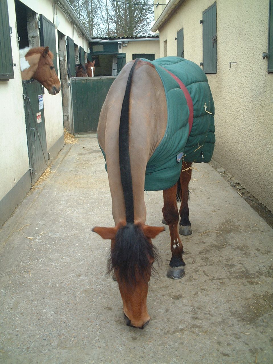 | Dire merci | j'ai coupé l'hiver dernier, sans grandes convictions.......... sa crinière était jolie, égale, longue de 40 cm, brillante, en fait, c'est pas des crins qu'il a, mais c'est plutot de véritables cheveux trés fins ! ce qui m'énervait, c'était que malgré ça, je trouvais sa crinière trop fine ahhh, j'adore les crinières bien touffues des poneys ! mais bon...........donc, malgré certaines personnes qui disaient que ça servirait a rien, j'ai pris mes ciseaux un aprés midi sur un coup de tête, et vlan !! rasé de chez rasé ! bien a ras ! et ses 40 cm de crins soyeux dans une poche........... et bien là, il a repris 30 cm de crins ! et + épais ! sa finesse de crins n'a pas changé, mais au lieu d'avoir, mettons 40 000 racines, là il en a 70 000..... je suis donc contente ! je laisse pour le moment, en prévision de l'été, mais dès septembre prochain, on remet ça ! le but ??? avoir encore plus de crins ! un jour, on atteindra la crinière de poney ! lol |
