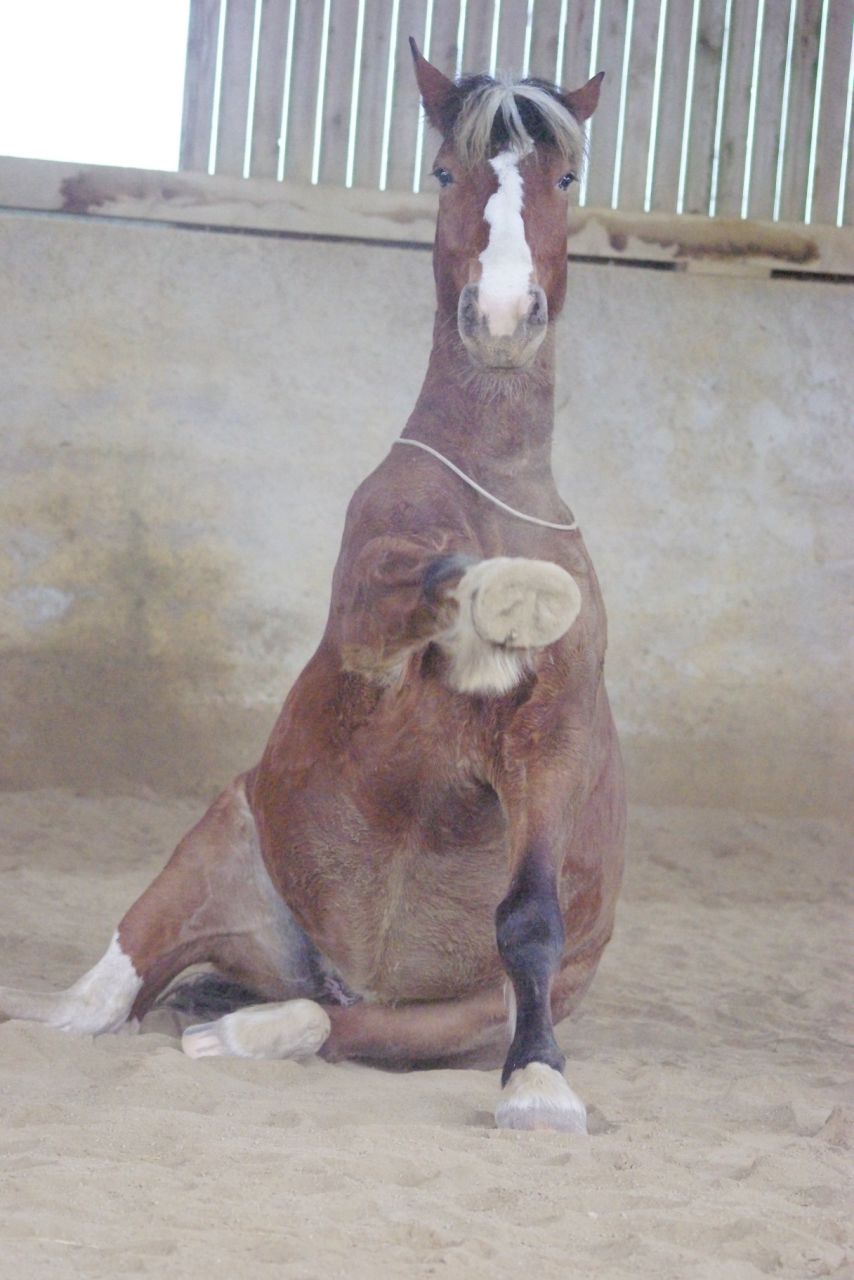 | Dire merci | Sa va de mieux en mieux pour Shalimar, il a droit a 2 jours par jours, ensuite paddock avant de reintegrer le pré avec un travail regulier. Pour Saphir, j'ai interer a le muscler, il a un leger accrochement rotulien... va falloir qui bosse un peut plus le gros. |