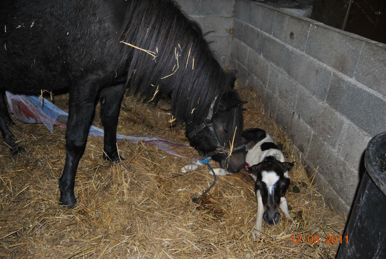 | Dire merci | Voilà, j'aurai besoin d'avoir vos expérience de poulinage. J'ai une ponette C pleine on ne sait pas de qui (récupérer pleine aprés petit séjour en pension). La prise de sang à été faite le 17 nov et indiquait qu'elle était dans le dernier trimestre. Là je pense que ça approche vraiment... Bouchon de cire sur les tétine il y a 2 jours, mamelles gonflées... Ce qui m'embête c'est que depuis hier début de soirée, la ponette est en sueur... mais rien ne se passe... Le véto doit me rappeller mais c'est long... A partir de quand ou de quels signes je m'inquiéte? Merci de votre aide Je poste ici, car personne ne passe sur le forum élevage et ça urge... |