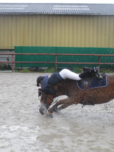 | Dire merci | ça m'est arrivé pas mal de fois, principalement sur le cross, heureusement jamais grave pour le cheval... moi par contre j'ai failli retser tétraplégique, j'ai laissé tomber le complet du coup, je me contente des petits parcours pour passer les galops |