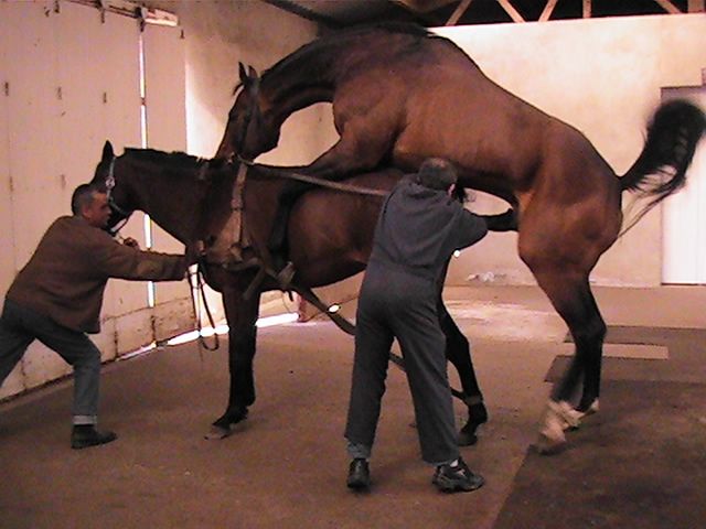 | Dire merci | sinon entravée la jument sur une monte en main ça me choque pas et vaut mieux que ça soit efficace tant qu"a faire (je vois pas la vidéo) sachant qu'on force l'étalon dans son approche, bien dans l'axe et la jument dans le moment ou elle va accepter le male la monte en main c'est dangereux donc autant prendre des précautions pour "liiter" les risques |