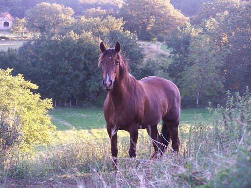 | Dire merci | Je participe! Mon gros,Pilgrim,il aurait 18ans,vient d'éspagne et d'après son ancien véto il y aurait probablement du sang de quarter... Pour moi c'est ce qu'ils appellent un "montagne",croisement de selle et de trait,avec peut-être un peu d'arabe! Il est lent mais a le pied sûr ![]() ![]() ![]() |