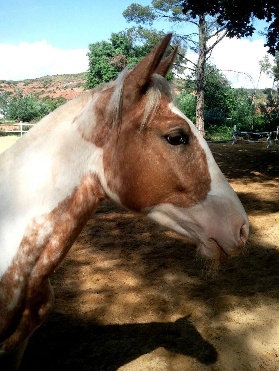 ), mesure 1m50 sur les papiers (mais un peu moins en vrai je pense), et est déclarée ONC. Mais d'après ses anciens propriétaires elle aurait de l'espagnol et du quarter horse...