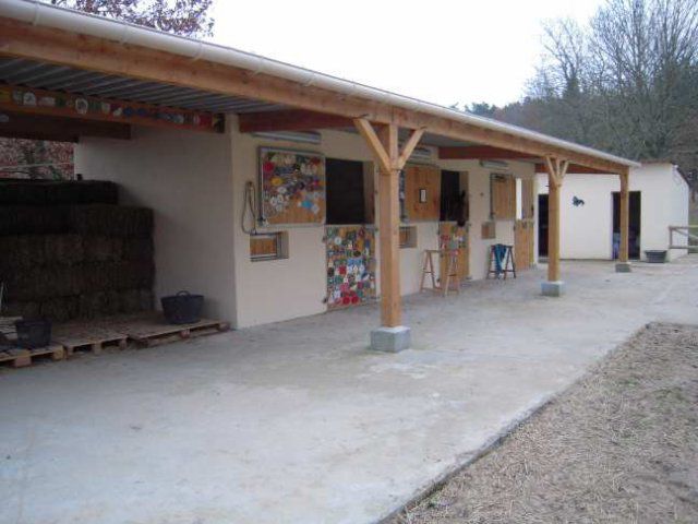 | Dire merci | pareil, 6 boxes en parpaings, construits par nos petites mains, en 15j (on est pas maçons hein )les chevaux ont un mur d'1.20m de haut entre pour pouvoir se papouiller aussi, ca me paraissait indispensable |