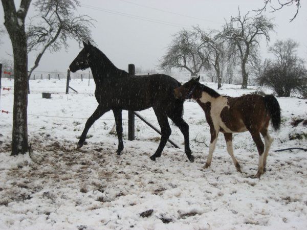| Dire merci | mon ptit loulou qui va bientot prendre 5ans, en train de se faire harceller sexuellement par une jument en chaleur qui le suivait partout! ![]() ![]() perdu dans les vastes paturages.. ![]() |
