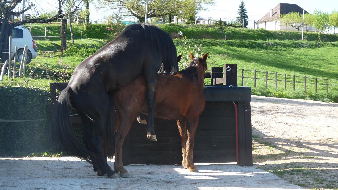 | Dire merci | Au poil!!! Ma Flicka est amoureuse J'ai assisté à la saillie cet a.m. Sustu super mignon pour un jeune mec excité. Flicka s'est admirablement comportée (oui, je sais, pas très modeste qd il s'agit de mes chevaux... )Il l'a déjà saillie jeudi soir et Laurent et Garance vont continuer à la présenter jusqu'à ce qu'elle ne veuille plus de lui. Et puis, le cadre ne gâche rien à l'ambiance romantique, quel paradis là-bas!!! Ah, ça y'est, ça marche pour les photos : Petite douche rafraichissante pour la demoiselle ![]() Affaire vite conclue ![]() Papa Sustu ![]() Ma Flicka définitivement accroc ![]() |