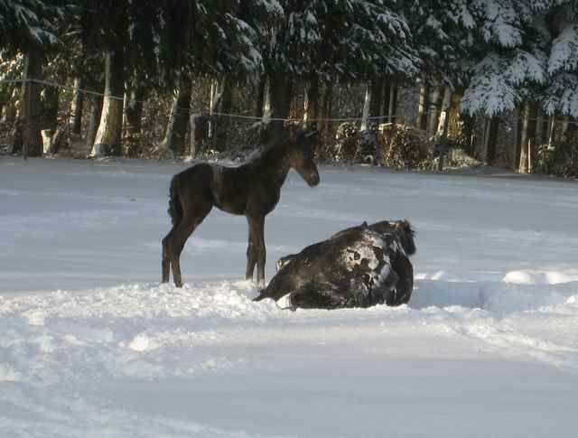 | Dire merci | S'il veut en voir en vrai, si vous êtes du coin du 88 vous êtes les bienvenus. Ma porte est toujours ouverte pour les amoureux de chevaux. Ils se sont très bien acclimatés dans les Vosges ou la température peut aller jusqu'à - 20 degrés. Ma jument de 4 ans à passé l'hiver dehors et n'en a pas souffert. Nourrit en conséquence et un abris dans le parc bien sure. Les autres PRMe étaient au parc en journée au box la nuit. |