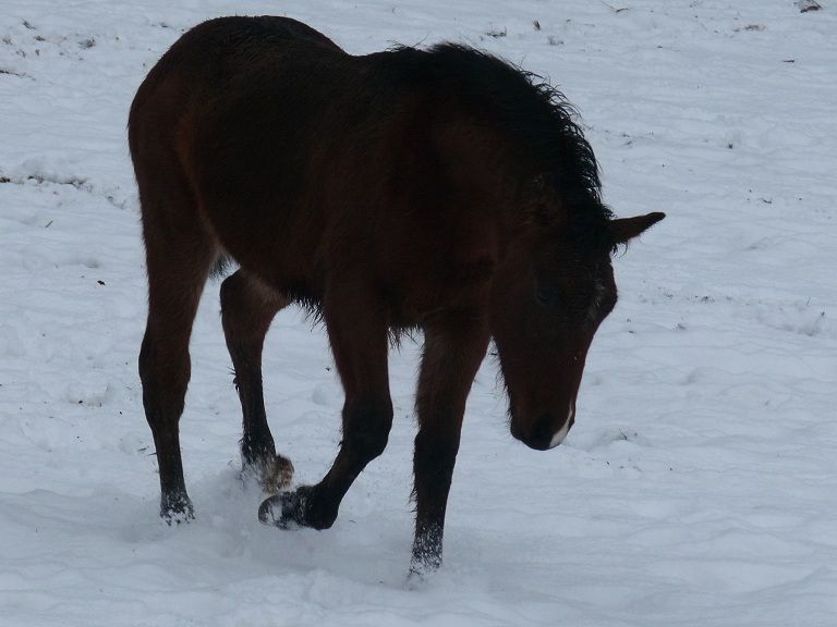 | Dire merci | Pour l'instant, pas grand chose à dire, je ne l'ai vu qu'en photo ! Il vient de l'élevage San Adeodato (Ufesa doit connaitre, je pense que son Brandon Tb vient aussi de là), et aura 2 le 21 Mars. Il semble avoir de beaux déplacements, et serait presque parfait s'il n'avait pas quelques poils blancs en tête et des principes de balsannes sur les postérieurs... Très mignon ton bb Sahel ! Finalement, il est... bai ! La génétique et ses mystères... |