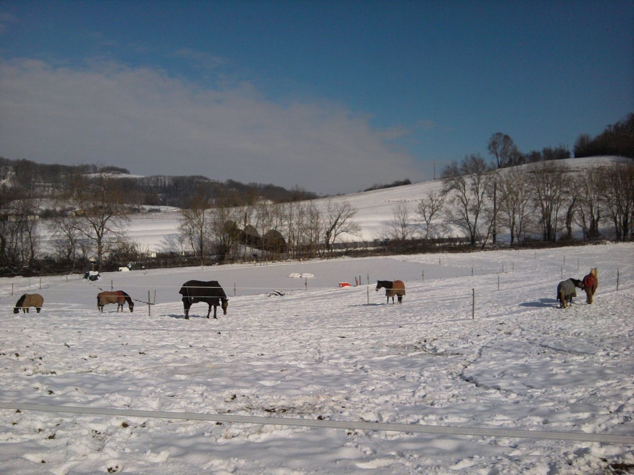 | Dire merci | en fait on voit pas grand chose sur ma photo mais peux pas aller en prendre maintenant, on sait meme plus differencier la carrière des paddocks, c'est tout recouvert de neige |