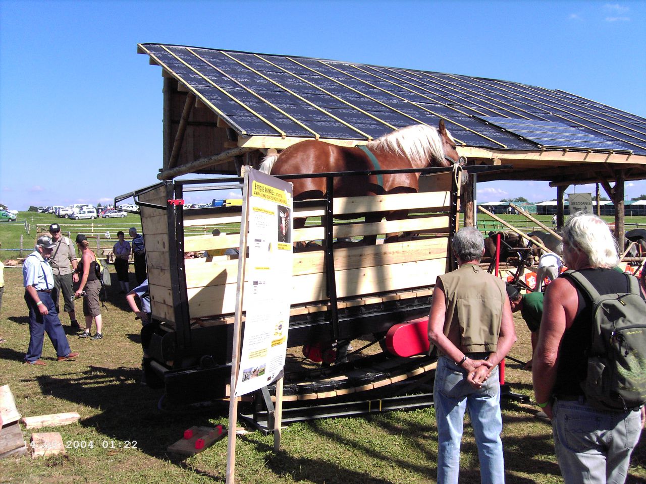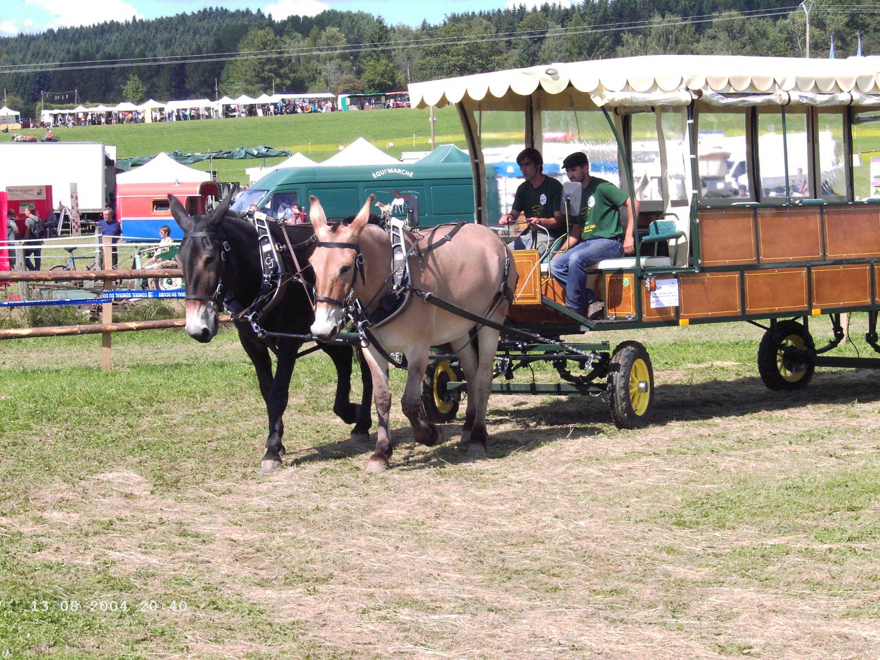 | Dire merci | Il existe une super manifestation. C'est Terre de Traits, à Levier, dans le Doubs, en Franche-comté. Pendant un weekend, toutes les races de traits françaises (et quelques-une d'ailleurs) participent à des concours de labour, maniabilité, traction,... ça attire beaucoup de monde. C'est également très tourné sur la traction animale en tant qu'énergie verte... ça valorise beaucoup le retour de cette énergie propre. Malheureusement, ce n'est pas tous les ans. En principe, c'est tous les 4 ans. On peut trouver un peu de tout. Selliers, produits du terroir, artisanat, attelages,... ![]() ![]() ![]() ![]() ![]() |
