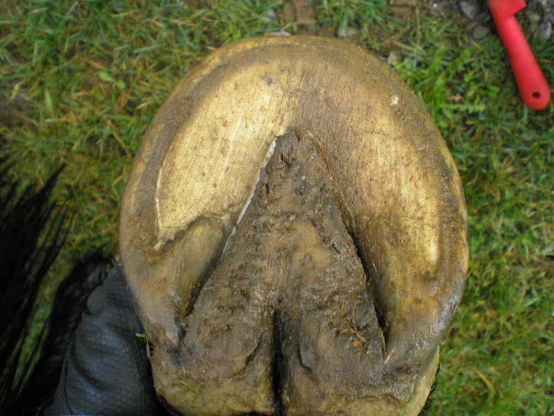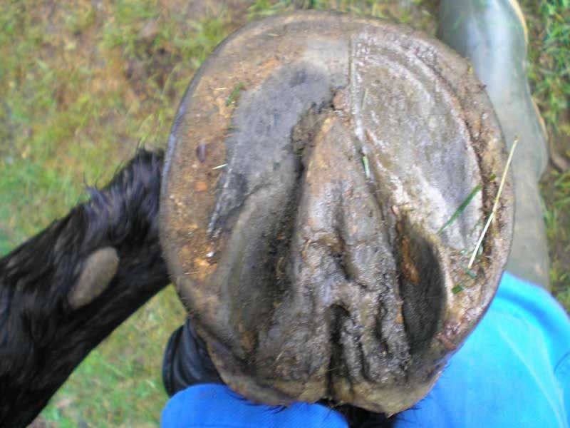 | Dire merci | j'ai pensé à la pourriture de fourchette mais il n'y a pas d'odeur qui sort de son pied et c'est propre... et la fourchette n'est pas exagérément molle, juste ramollie a cause de l'humidité |