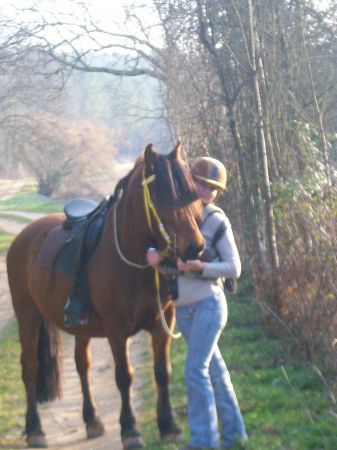 | Dire merci | Ah Merci clem76520!!! Tu me prouve enfin que je ne suis pas trop trop grande pour mon poulain!!! Moi 1m70, lui 1m40, mais aucun de nous deux n'a fini de grandir |