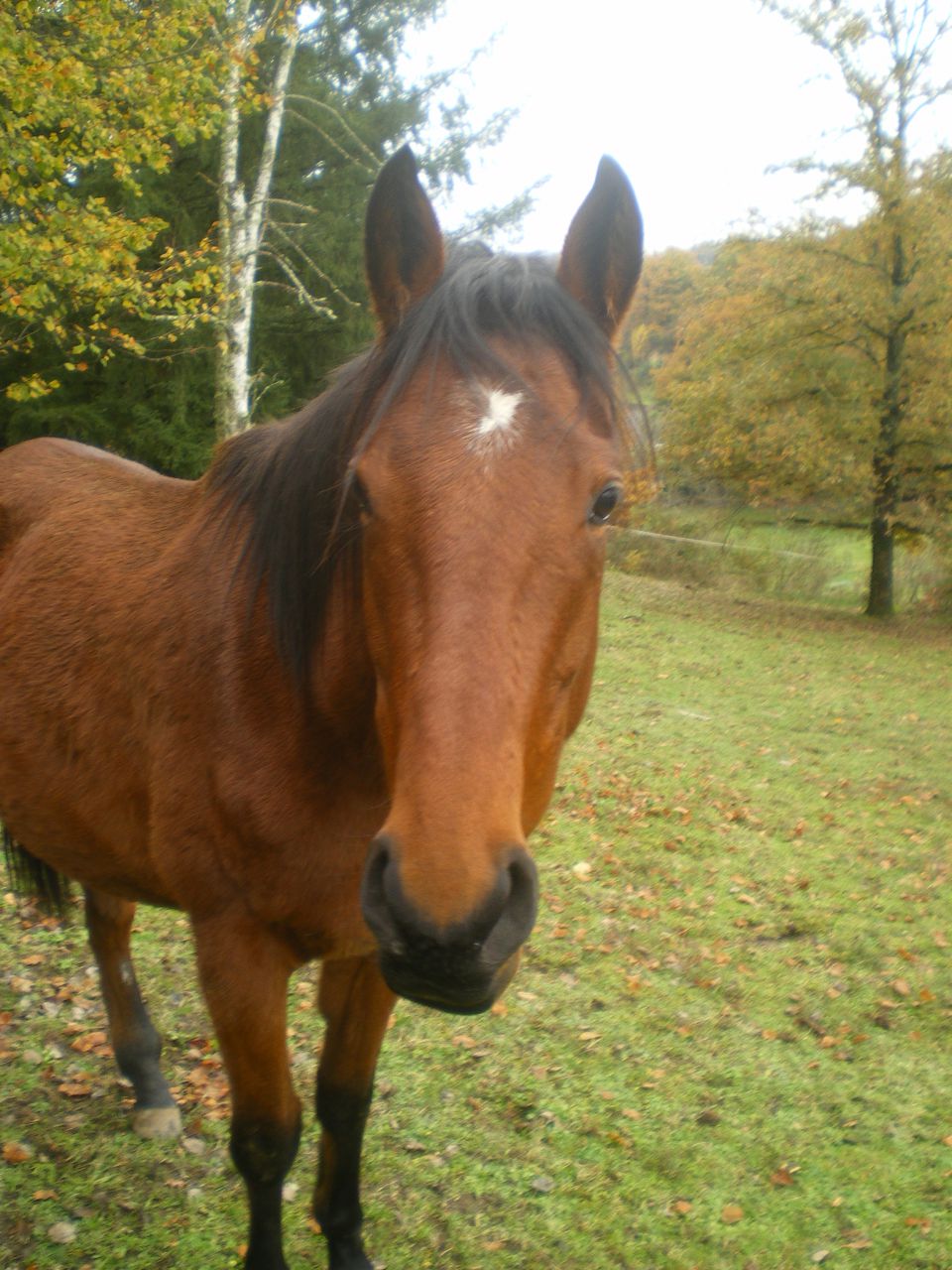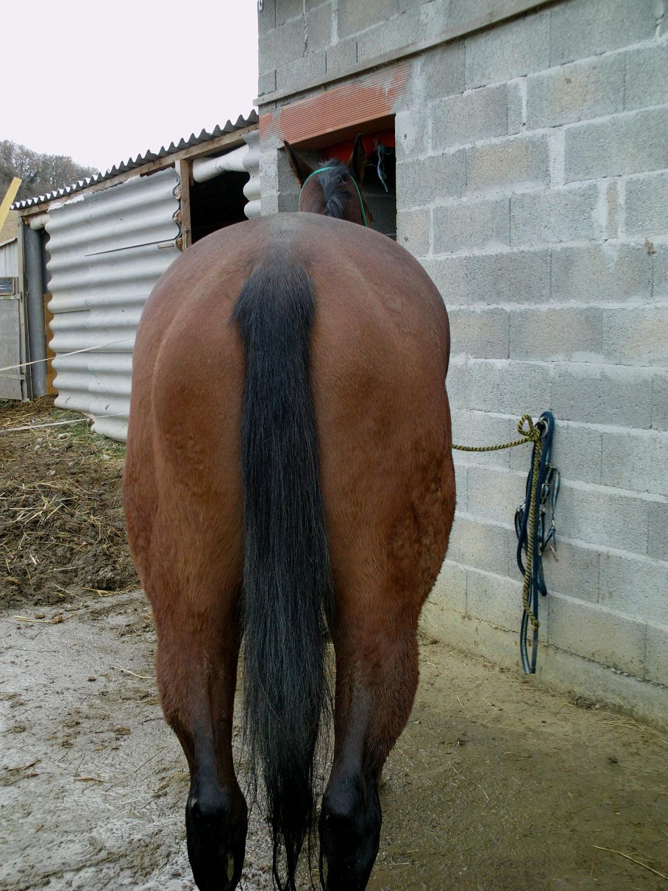 | Dire merci | Ma deuxième jument, Impératrice Royale, pur sang de 15 ans sauvée de justesse par une association :![]() A nous depuis septembre 2010, beaucoup de difficulté pour la remettre en état avec l'hiver et le fait qu'elle ne soit pas toute seule dans son pré, ça donne ça au début de l'hiver : ![]() Dernière photo qui date d'il y a quelques jours, on voit toujours les côtes, mais en bonne ancienne poulinière, elle n'a pris que du bide, et est démusclée, suite à une blessure au garrot et au fait qu'on ne la travaille plus depuis fin novembre ![]() ![]() |