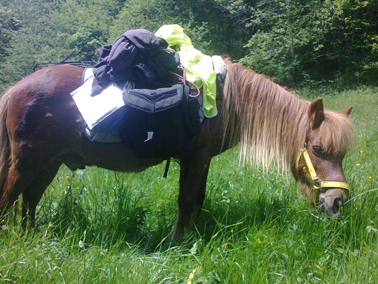 | Dire merci | Petites nouvelles du jour. J'avais fait un pari avec des amis. Si je réussissais, je refaisais une promenade sur mon Tara... eh bien aujourd'hui, à cheval ! (on a marché 10mn et le reste à brouter) J'avais les jambes en coton avant de monter, comme la trouille. Et ça a été comme ça toute la balade car j'avais pensé monter sur un pépère tranquille de bientôt 31 ans donc juste un licol étho sur la tête. Sauf que le pépère en question était sur 220W ! Heureusement que mon ami le tenait, il trottait sur place, je n'aurai rien pu faire d'autre que me faire emmener. A l'arrivée, je l'ai lâché en carrière le temps de curer le box, eh bien le voilà qui part au galop pleine balle. Depuis qu'il ne sort qu'à la demi journée, il a la pèche le Tarapouille et ça nous fait bien plaisir. Je pense que demain, il y aura de la courbature dans l'air... |