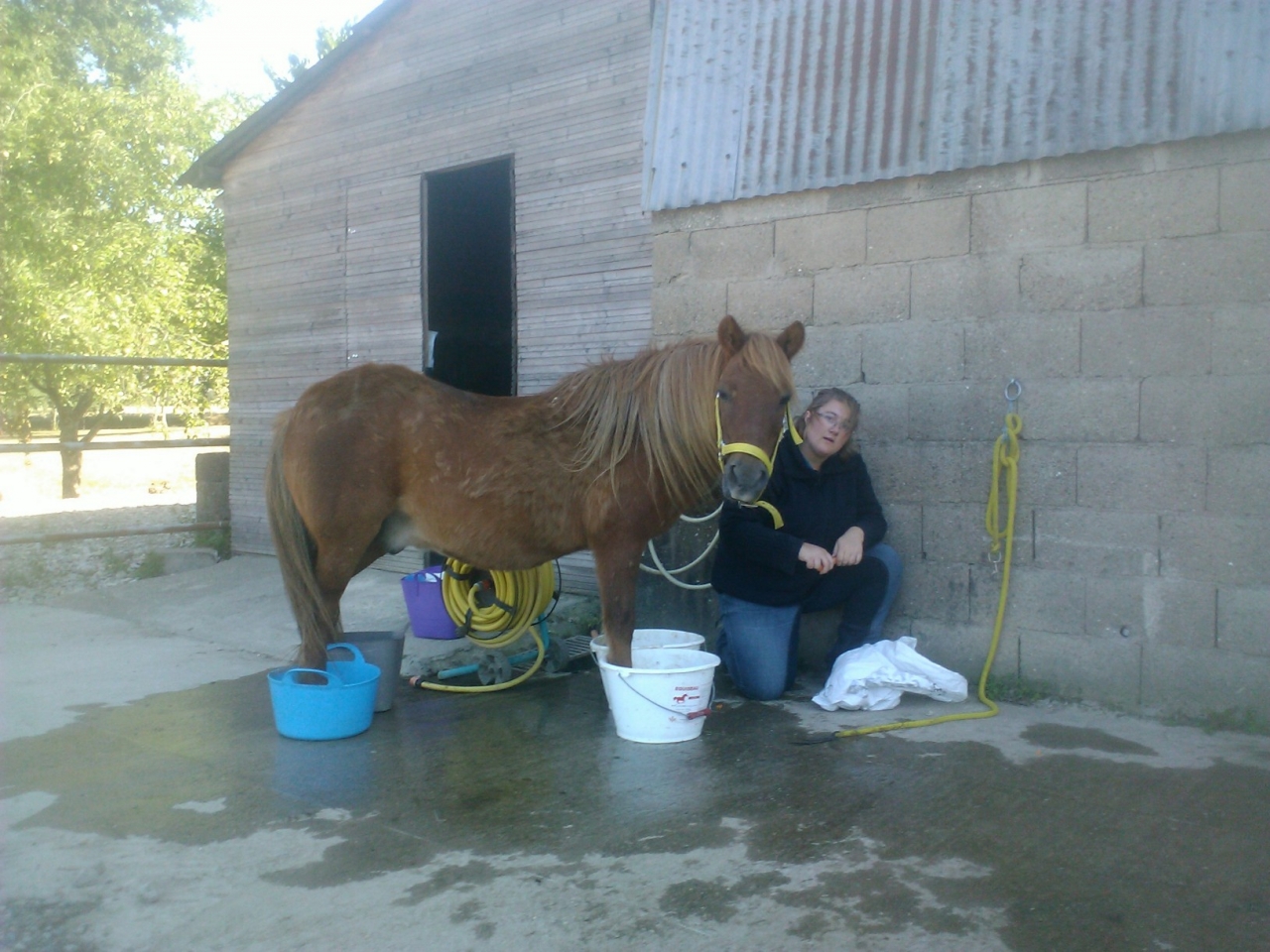 | Dire merci | Énorme frayeur ici hier pour ma maman, heureusement que je n'étais pas là car j'aurais paniqué... Sieg remue énormément en mangeant, il râpé des pieds, devant, derrière.... Une des sursangles était détendue et ma mère n'avait pas réussi à cause de la boue à la resserrer. Elle s'est donc dit, Lutine le fera demain tant pis... Sauf que Sieg, s'est pris un postérieur dedans il s'est débattu pdt plusieurs minutes avant que ça ne craque à la couture et le libére.... Pas de bobos apparents, il marchait bien aujourd'hui et j'ai pu tout retendre. Mais ma pauvre maman s'en veut du coup! C'est pas de chance, ça aurait pu mal tourner mais ça été donc next! |