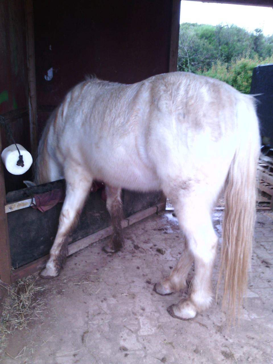 | Dire merci | Il est très joli ce petit blondinet A la pension c'est un peu la cata - panique : plus de foin ! Ils ont donc décidé de mettre les chevaux à la luzerne. Sauf que Tara ne la supporte absolument pas. J'ai retenté de lui donner une brassée : diarrhée direct ! J'ai réussi à négocier pour qu'ils ne lui mettent pas de luzerne mais du foin d'un ballot qu'ils ont retrouvé je ne sais ou... combien de temps cela va durer, je suis en stress. En attendant, la luzerne est stockée près des prés pour la distribution de la journée. Sauf qu'ils ne descendent pas de foin pour Tara en remplacement... Je me retrouve donc à emmener à la brouette du foin tous les soirs à son paddock ou je m'enfonce jusqu'aux chevilles dans la boue sans quoi il passe la journée à jeun. Fatiguée de toutes ces histoires... ![]() |