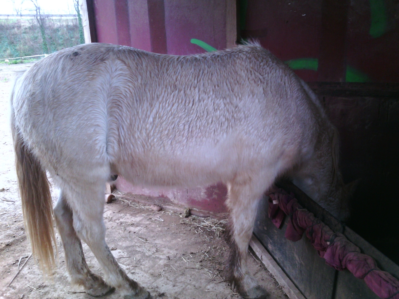 | Dire merci | bonjour. je me joint a vous , car j'ai un loulou qui aurait , 22 ans cette année , mais ma veto me dit qu'il a plus , il doit avoir 26 ans ( on va dire). je l'ai eu il avait (13 ans) , donc 17 ans . ils était borgne de l'œil gauche quand il est arrivé chez moi. mais c'est un petit camargue avec un cœur en or , d'une gentillesse a toute épreuve . il a eu un mélanome a son œil droit , sous la cornée , il a finalement perdu la vue , le 5 octobre 2014. ça n'a pas était simple , mais il c'est bien adapté , on sortait même en balade monté , il trotté et galopé si il en avait envi. l'été dernier , il a fait 3 coliques en 1 mois et demi ,fin juillet , fin aout , fin mis septembre . il a des problème de digestion , il est donc au bouchons de foin divisé en 3 repas / jour .le foin , il le mache et le recrache , il ne digère plu non plu tout ce qui est complément qui n'est pas sous forme de granulé. il a de la cimétidine 3 foie par jour , pour le mélanome . depuis le début de l'année , il c'est mis a boiter , il a du PVB de chez boiron , pour soulager l'arthrose , ma veto est venue en janvier pour le rappel de vaccin , elle la osculté , mais ce jour la il ne boité quasi pas , voir plus du tout. il y a 2 jour , il c'est remis a boiter , et hier il était couché , on nous a prévenu , on est donc allé voir de suite , a notre arrivée , il c'est levé et la , mon loulou raide comme un piqué , il avait beaucoup de mal a marcher. j'ai donc tel a ma véto , et on la mis sous equipalazone , hier au soir , il marché déjà mieux. c'est la première foie qu'il fait une crise d'arthrose . le temps est humide en ce moment . mes loulous ne sont pas en pension , ils sont a 1 km de chez moi. je vais essayée de mettre des photos que j'ai prises ce matin . il n'est pas maigre du tout . si vous avez des conseils pour soulager son quotidien pour l'arthrose , je suis preneuse . ![]() ![]() ![]() ![]() |
