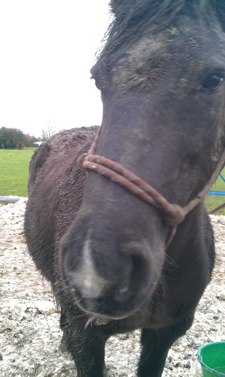 | Dire merci | Loulou n'était encore pas top forme hier... ils avaient donné du foin fermenté. Ah oui, cela n'est pas étonnant. Donc, j'ai re-briefé 2 des 3 employés et vais mettre une affiche sur sa porte de box : "si foin humide ou poussiéreux, remplacer par de la paille, svp" Grrr, ils me le mettront sur le flanc comme ça, c'est pas possible. |