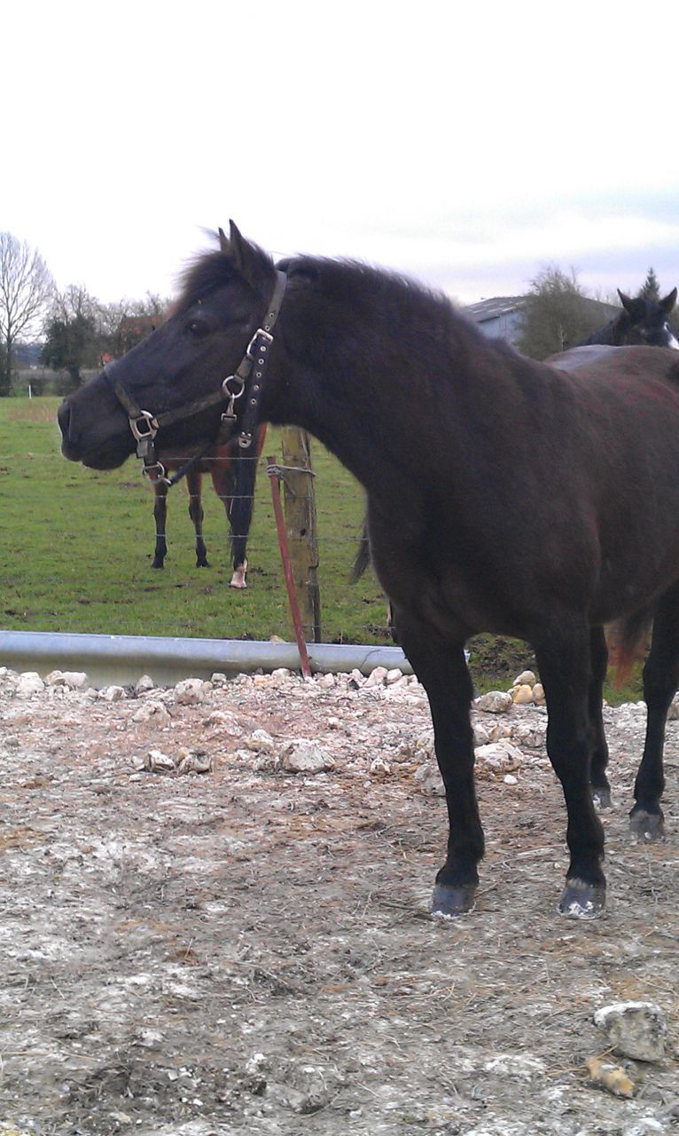 | Dire merci | Aujourd'hui, je sentais le loulou en pleine forme. Je lui ai douché les postérieurs histoire de bien voir les accrocs et hop, un coup de rappe. Ensuite, histoire de donner un peu de place, je l'ai lâché dans la carrière au lieu du rond de longe... tayooooooo ! Ah ben il avait la pêche et encore de jolies allures. Par contre, vite fatigué, mon lardon, il a aussi eu un passage à vide après. Je l'ai laissé se rouler dans la boue histoire qu'il se fasse plaisir, l'ai confié à de petites mains qui se sont fait plaisir à le brosser et lui ai donné une brassée de foin. En ajoutant 2kg de carottes à l'équation, requinqué en moins de deux, l'animal. ![]() |