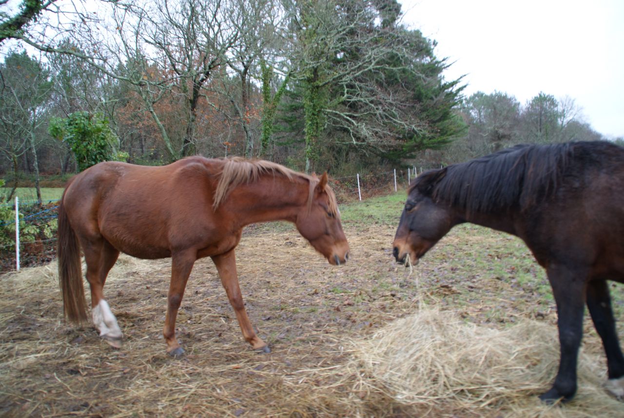 | Dire merci | J'ai eu des nouvelles de mes vieux, ils vont bien et malgré la neige et le froid ils ont gardé leurs habitudes et leurs horaires. Après la ration ils repartent au pré et ne rentre quasiment pas au box. Ils n'ont pas l'air perturbés plus que ça. |