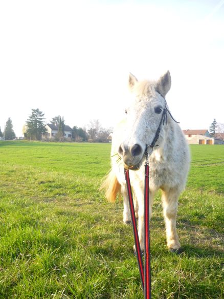 | Dire merci | Alors pour la petite histoire, j'avais 9/10 ans quand j'ai acheté Judith à mon ancien ancien centre équestre, à cette époque elle avait 17 ans et il la vendait parce qu'apparemment elle mordait... L'année d'après je n'étais plus à ce CE et je montais un peu Judith chez moi... Pendant un temps elle a plus foutu grand chose et depuis 2/3 ans je lui fais faire des balades en main de temps en temps qui sont en train de devenir des balades en Longues Rênes . En tout cas, elle aime bien sortir pour voir un des ses copains poneys ou juste pour se dire bonjour quand elle se voit dans une vitre .Quelques photos de notre balade d'hier : ![]() Bon c'est pas comme ci c'était du vrai travail en LR hein. ![]() ![]() |