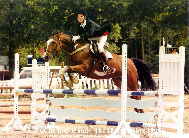 | Dire merci | Merci ESTER Je pense que c'est son côté poney qui lui permet d'avoir ce beau crin à la queue et la crinière (qu'elle a eu longtemps coupée à l'iroquoise avant d'être au pré) Mais on ne peux pas tout avoir, elle a un toupet ridiculement petit et peu fourni voici une photo à l'époque ou elle faisait des concours (en 1999, elle avait 12 ans) on voit bien la coupe de la crinière |