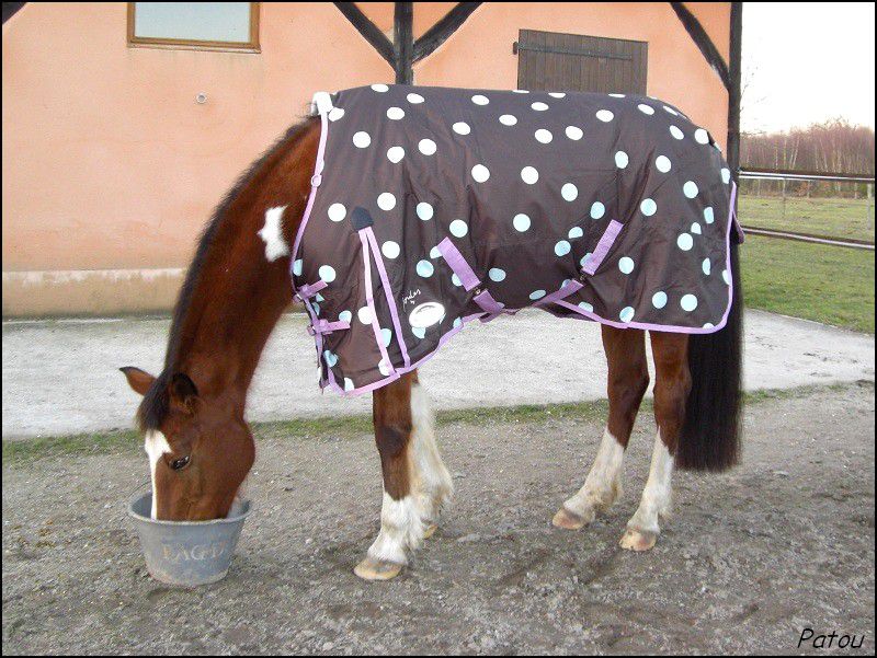 | Dire merci | Arf, ben oui mais normalement, je n'aime que les couleurs genre noir, gris, ou par exception le bleu marine pour les couvertures horseware (je ne les trouve que de cette couleur) Mais là, c'était les soldes à la sellerie donc j'ai pris ce qu'il restait ! ![]() |
