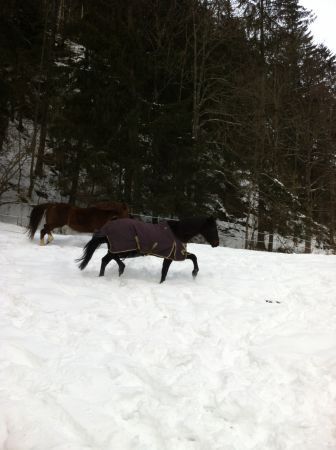 | Dire merci | Petite photo du jour... Aujourd'hui, papichou fête ses 28 printemps... sous la neige ! Une petite balade dans les bois, un bon mash, plein de carottes et de gros calins. Par contre, il boite. Le froid, les sols durs... ça ne lui réussi pas. Message édité le 24/02/13 à 18:33 |