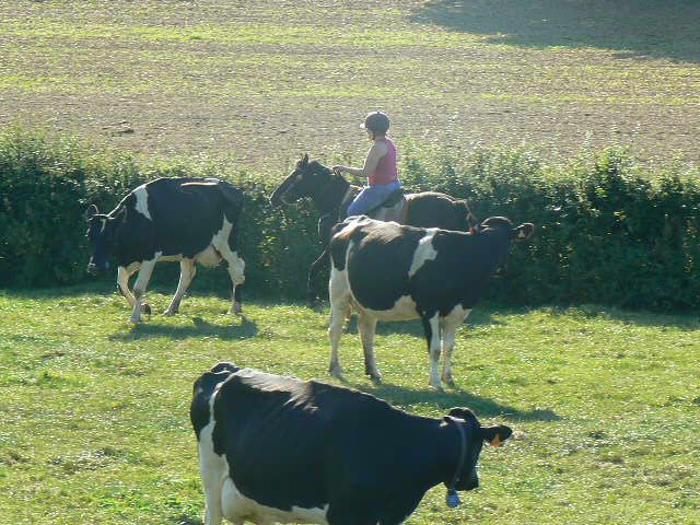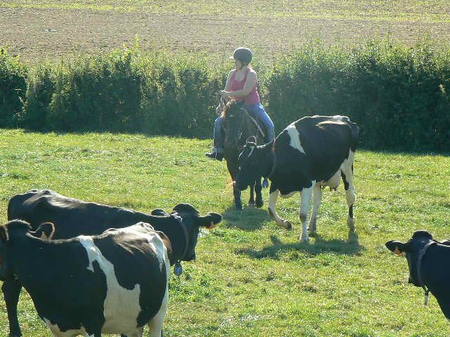 | Dire merci | Ca me rappelle les vacances en Gironde le jour où l'on a voulu rentrer les vaches,ma fille montait sur un pur-sang arabe... Ca l'a bien amusé le cheval! m'a fille a cru avoir des ailes avec lui alors que de nature c'est un ange!!!! De mon coté c'est confirmé: Kalou ne se couche plus... je ne sais pas combien de temps elle va tenir comme ça ![]() ![]() Le poteau a coté d'elle c'est pour qu'elle se gratte le ventre... Sa copine nell qui a bien grandi...et mûri ![]() ![]() |