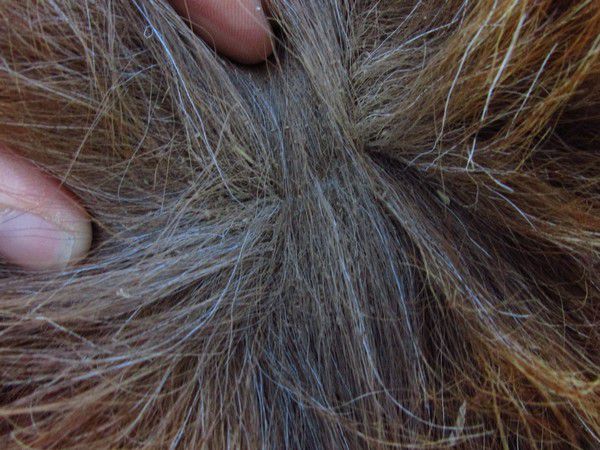 | Dire merci | Ha la patate ! Pas bête !! Les bouchons de luzerne, c'est la pelure ? Bon à savoir ! Le pois, je leur en donne juste en hiver et il y en a environ 50g pour un kilo de céréales. Vraiment pas grand chose quoi, juste qu'ils se maintiennent bien et ça à l'air de pas trop mal les réussir. Ils ont un beau poil pour voir qu'on est en hiver. Elle part contre ... photo de tout à l'heure ... ![]() J'ai pris une photo de l'intérieur de ses poils. Autant l'autre jour ça bougeait et c'était mou, autant là on dirait que ça à sécher et ça tombe en poussière dans les doigts.... ![]() |