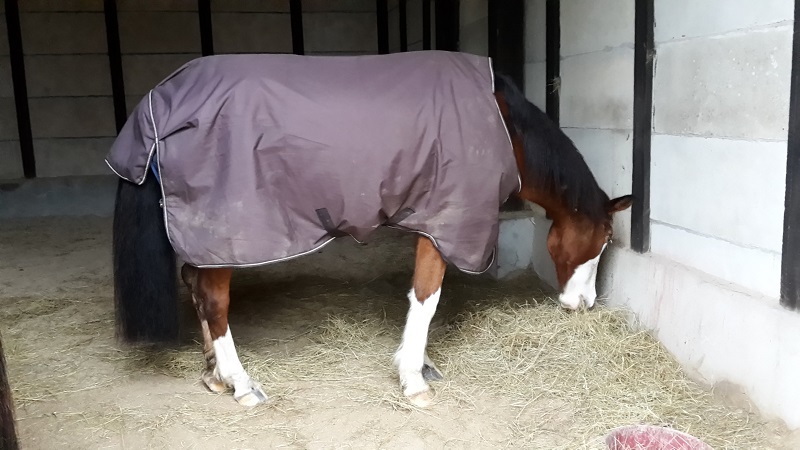 | Dire merci | Hé oui gatée mais Elle le vaut bien D'ailleurs en même temps que la pêche elle a retrouvé sa partie ronchon avec moi, impatiente au pansage malgré les gratouillis, évidement son copain l'attends dehors alors elle trouve tout trop long !! En tout cas pour la couverture je trouve que la coupe est top car bien couvrante au niveau du ventre. Et malgré tout elle ne s'empêtre pas dedans pour se relever. Aurore a du l'aider un peu une ou deux fois encore surtout lorsque c'est humide. Elle est sous traitement Audevar et cela l'aide bien |