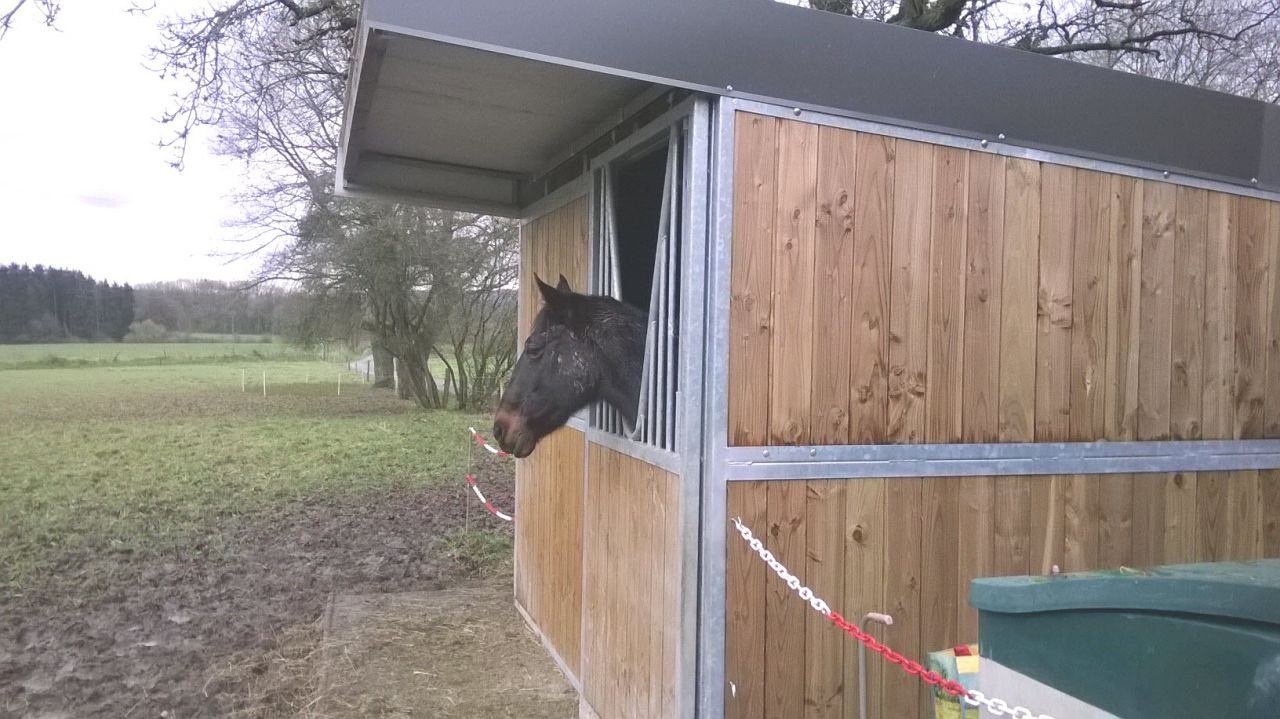 | Dire merci | De notre coté, ça y est on a couvert Dakota avec la grosse parce que les températures chutent beaucoup. Dakota a un très bon moral, il semble mieux au niveau du ventre même si j'appréhende toujours une nouvelle colique, il a perdu beaucoup de poids, je le trouve maigre ! J'espère qu'il va se remettre de ses coliques et dents en moins pour manger plus et maintenant qu'il est bien couvert qu'il va reprendre de l'état. C'est l'hiver le plus dur qu'il a jamais subit mon pépé ![]() la tendinite semble pour le moment partie mais j'ai bien peur que ce soit très temporaire |
